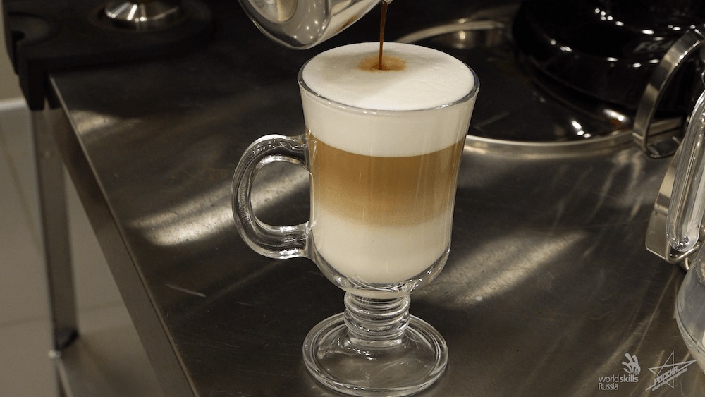 Соотношение компонентов: 1 часть эспрессо (30 мл) на 4–6 частей молочной составляющей (200–250 мл).