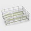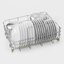 В данной модели две основные корзины: верхнюю можно регулировать по высоте на трех уровнях, нижняя оборудована держателями и специальными насадками, ускоряющими сушку (благодаря им тарелки не соприкасаются с металлическими прутьями — и влага быстрее уходит). Столовые приборы размещаются в отдельной корзинке.