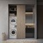 Машины с вертикальной загрузкой из-за своих конструктивных особенностей не могут встраиваться в мебель. Их высота составляет в среднем 89-90 см, и над ними необходимо оставить пространство для свободного открывания дверцы.