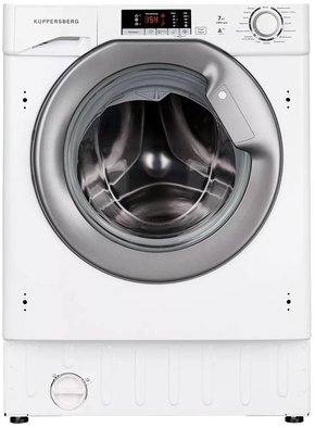 Стиральная машина Kuppersberg WM 1477 — встраиваемая стиральная машина, выполненная в классическом белом цвете. Максимальная загрузка барабана в 7 кг делает эту модель идеальной для семей из двух-трех человек. Управление осуществляется с помощью кнопочного управления и поворотного регулятора. Вся информация выводится на цифровой дисплей, поэтому аналоговые элементы в сочетании с электронным выводом обеспечивают комфорт эксплуатации прибора. Устройство с фронтальной загрузкой удобно встраивается под столешницу на кухне или в ванной комнате. Обязательно сверяйте габариты машины и вашего гарнитура заранее.