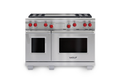 Впечатляющий духовой шкаф Wolf серии Proffesional с фирменными красными ручками.