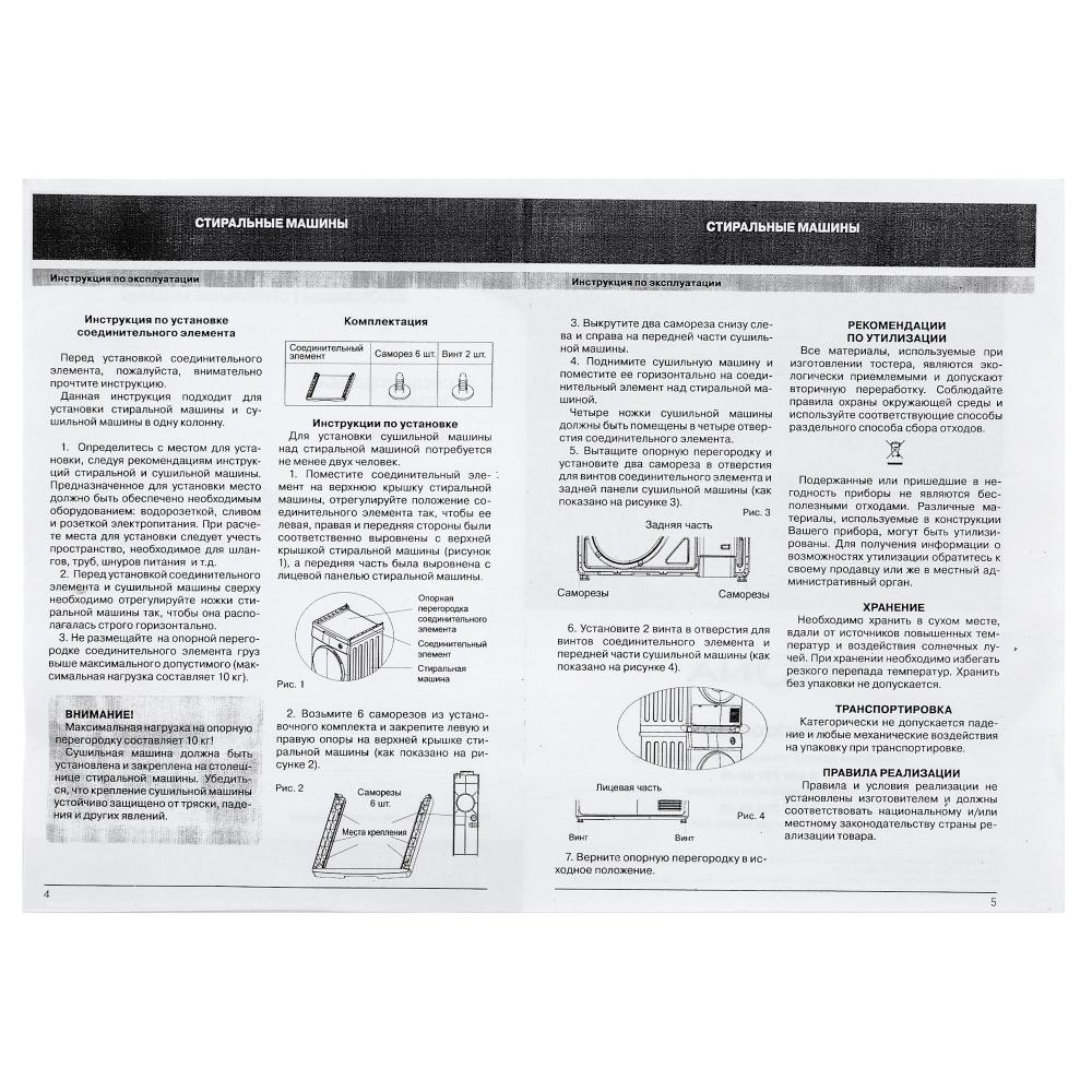 Предназначение: для стиральных машин, для сушильных машин. Количество (шт): 1. Материал: Пластик. Цвет: белый.