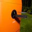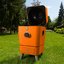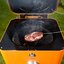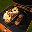 Уличный угольный гриль в ярком оранжевом корпусе. В нем можно обжаривать мясо, овощи и даже запекать пиццу на специальном камне (уже в комплекте). Сенсорная панель управления простая и наглядная.