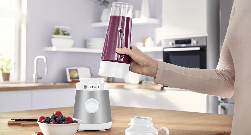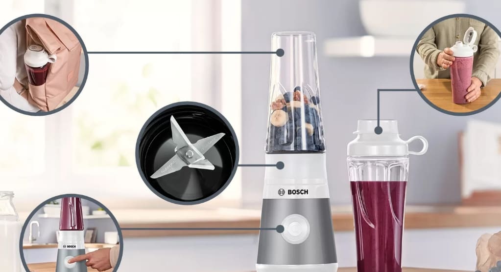 Ёмкость блендера (характерная для стационарных моделей Bosch) совмещает функции чаши и мерного стакана, часто оснащена шкалой объёма и плотной крышкой с загрузочным отверстием, что позволяет добавлять ингредиенты прямо в процессе работы. Это делает приготовление ещё более удобным и безопасным.