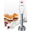 Погружной блендер Bosch позволяет готовить смузи, коктейли, смешивать соусы и заправки и многое другое. Такая конструкция требует вашего участия — нужно держать рукоятку с насадкой и контролировать направление движения. Плюс в том, что можно использовать ее прямо в кастрюле, когда готовите, например, суп-пюре. Корпус сделан в основном из пластика, что уменьшает вес прибора. Он может как влиться в общую гамму интерьера, так и стать ярким акцентом; доминирующий цвет — белый.