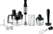 Погружной блендер Bosch позволяет готовить смузи, коктейли, смешивать соусы и заправки и многое другое. Такая конструкция требует вашего участия — нужно держать рукоятку с насадкой и контролировать направление движения. Плюс в том, что можно использовать ее прямо в кастрюле, когда готовите, например, суп-пюре. Корпус сделан в основном из металла, что повышает надежность прибора. Он может как влиться в общую гамму интерьера, так и стать ярким акцентом; доминирующий цвет — черный.