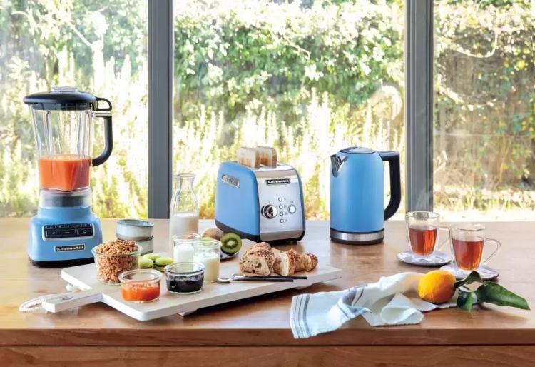 Стационарный блендер KitchenAid позволяет готовить смузи, коктейли, смешивать соусы и заправки, измельчать продукты до состояния пюре и многое другое. Его конструкция подразумевает автономную работу — вам нужно только положить овощи или фрукты и выбрать режим. Он может как влиться в общую гамму интерьера, так и стать ярким акцентом; доминирующий цвет — синий бархат.