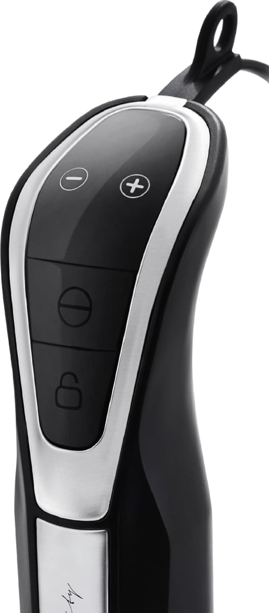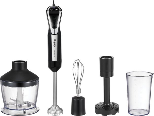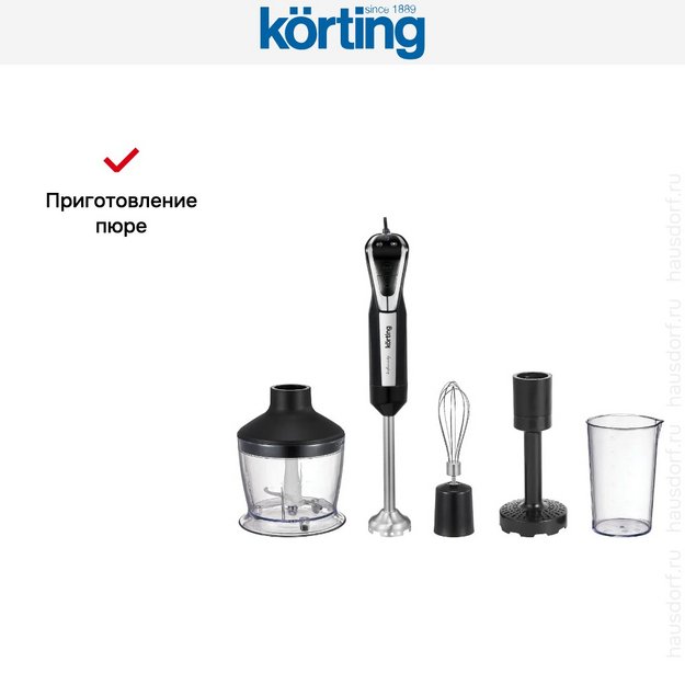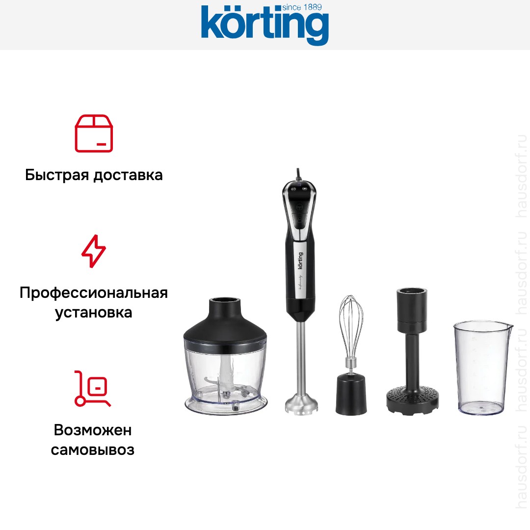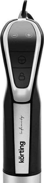 Погружной блендер Korting позволяет готовить смузи, коктейли, смешивать соусы и заправки и многое другое. Такая конструкция требует вашего участия — нужно держать рукоятку с насадкой и контролировать направление движения. Плюс в том, что можно использовать ее прямо в кастрюле, когда готовите, например, суп-пюре. Он может как влиться в общую гамму интерьера, так и стать ярким акцентом; доминирующий цвет — черный. Отдельная особенность этой модели — крепление на стену, которое позволяет сэкономить место на кухне и грамотно распределить технику.