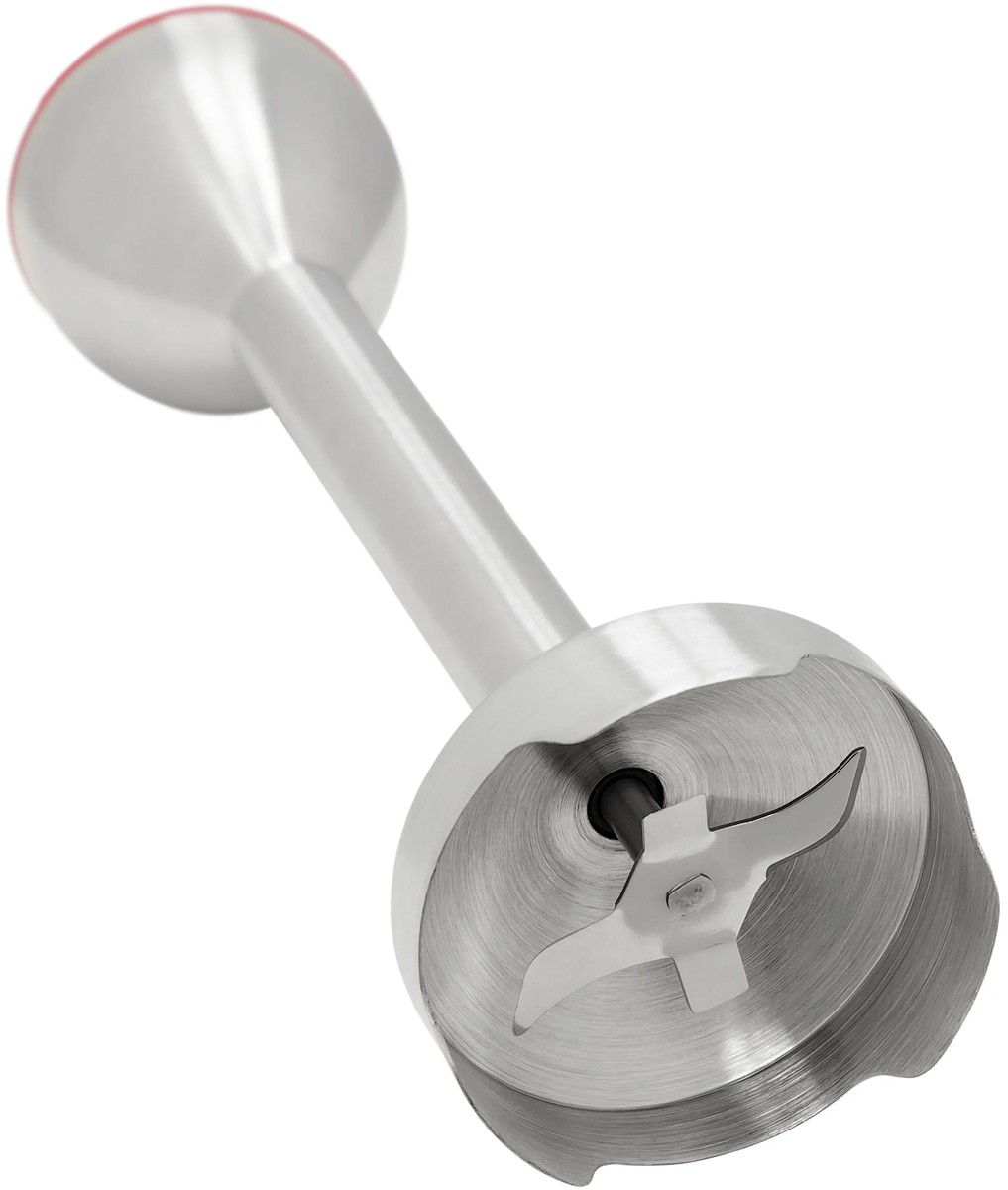 Погружной — мотор расположен в рукоятке, на конце которой есть насадка с венчиком или ножами. Вы опускаете ее в емкость и измельчаете продукты, удерживая прибор на месте, нажимая или проводя по кругу.
