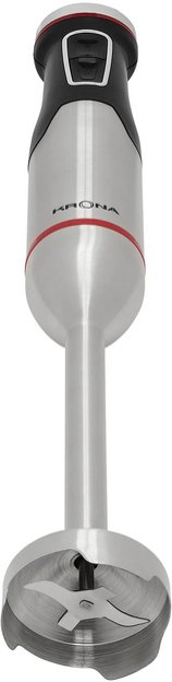 Погружной блендер KRONA позволяет готовить смузи, коктейли, смешивать соусы и заправки и многое другое. Такая конструкция требует вашего участия — нужно держать рукоятку с насадкой и контролировать направление движения. Плюс в том, что можно использовать ее прямо в кастрюле, когда готовите, например, суп-пюре. Корпус сделан в основном из пластика, что уменьшает вес прибора. Он может как влиться в общую гамму интерьера, так и стать ярким акцентом; доминирующий цвет — черный/нержавеющая сталь.