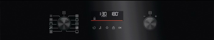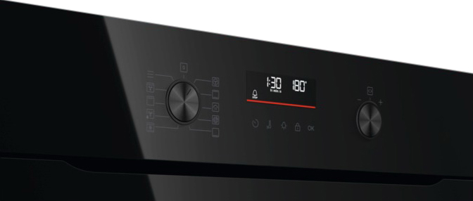 Особенности дизайна и внешней панели управления — также важный пункт при выборе духовки на кухню. В данной модели нужно обратить внимание на цвет — черный,