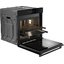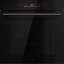 Особенности дизайна и внешней панели управления — также важный пункт при выборе духовки на кухню. В данной модели нужно обратить внимание на цвет — черное стекло, охлаждение двери, чтобы поверхность и мебель вокруг не нагревались.