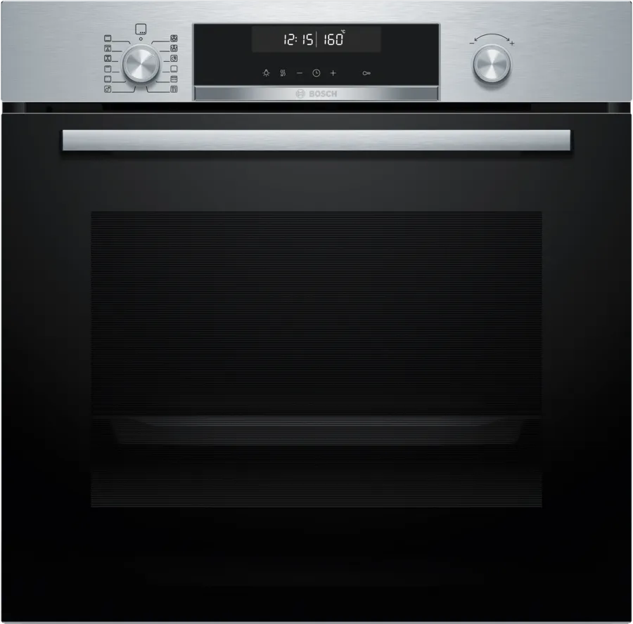 Пиролитическая очистка в духовых шкафах Bosch — это выжигание всех органических загрязнений, которые остаются в камере после приготовления пищи. При этом дверца духовки блокируется, а температура в камере поднимается до 500 градусов. Оставшийся после очистки пепел можно вытереть влажной губкой.