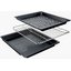 В стандартную комплектацию любого духового шкафа входят один или два противня — эмалированных или с антипригарным покрытием — и решетка. Единственный противень, как правило, имеет низкие бортики и предназначается для приготовления выпечки. Если духовка комплектуется двумя противнями, то второй отличается более высокими бортиками — его можно использовать для запекания мяса, птицы, овощных блюд. На решетке в духовке, не оснащенной грилем, обычно устанавливаются формы для запекания — стальные, керамические или стеклянные. В духовках премиум-класса количество противней может быть увеличено: к стандартному комплекту добавляются противни с перфорацией для мяса, специальные поддоны для сбора выделившегося сока.
