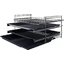 Уровни приготовления — это держатели для противней и решеток, расположенные по бокам камеры. В стандартном шкафу их обычно 4-5, в некоторых моделях доходит до 7 и больше. Для многих блюд имеет значение, на каком уровне их готовить, так как распределение жара происходит по-разному сверху, снизу или посередине. Для выдвижения и переставления противней на этих уровнях есть разного вида направляющие.