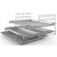 Наиболее удобны телескопические направляющие: они представляют собой металлические опоры, на которых противень не только устанавливается в камере, но и может выдвигаться за ее пределы. Они являются наиболее безопасными, ведь пользователю достаточно потянуть за переднюю часть противня, используя прихватку или полотенце, чтобы полностью извлечь его наружу. Более того, благодаря специальному фиксатору противень можно оставить остывать прямо на направляющих. Единственный недостаток этих направляющих — достаточно сложная конструкция, несколько затрудняющая их очистку.
