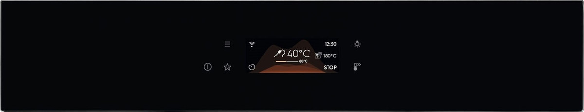 Сенсорный дисплей работает одновременно как устройство управления и устройство вывода данных, он может функционировать в интерактивном режиме. Духовки с текстовым дисплеем позволяют отобразить большее количество опций: как правило, они обладают и большим функционалом. Кроме выбранного режима работы и установленной температуры они отображают, например, фактическое ее значение, достигнутое на данный момент. На дисплее могут также появляться рекомендации по выбору автоматической программы для приготовления определенного вида продуктов, по установке температуры и времени приготовления. Здесь же выдаются сообщения о блокировке дверцы или панели управления, о зафиксированных ошибках, уровне мощности микроволн и пара.