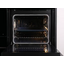Вместимость камеры 65 литров позволяет готовить на нескольких противнях одновременно. Внутренняя эмалированная поверхность устойчива к пригоранию и легко очищается, а паровая система очистки дополнительно облегчает уход. Телескопические направляющие упрощают извлечение горячих противней. Галогенное освещение ярко подсвечивает камеру, что удобно при проверке готовности.