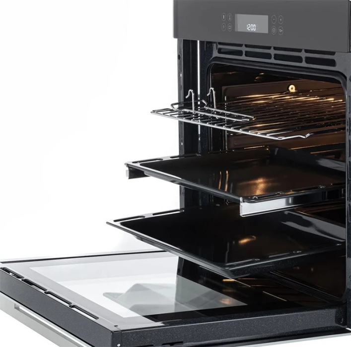 Духовые шкафы объема от 70 литров и более — вместительные полноразмерные приборы, которые отличаются большим набором функциональных возможностей. Высота таких духовок обычно составляет 60 см, ширина же может варьироваться в широком диапазоне: от стандартных 60 см до 90 см и даже 120 см. Количество уровней приготовления может достигать пяти.