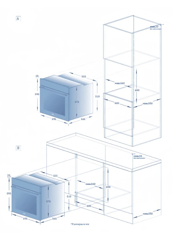 Ко всем моделям прилагаются подробные инструкции по установке, где указаны точные размеры ниши для каждой конкретной духовки.