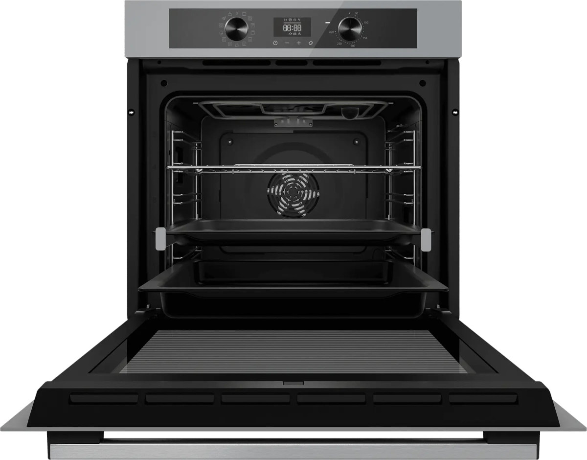 Особенности дизайна и внешней панели управления — также важный пункт при выборе духовки на кухню. В данной модели нужно обратить внимание на цвет — серый,