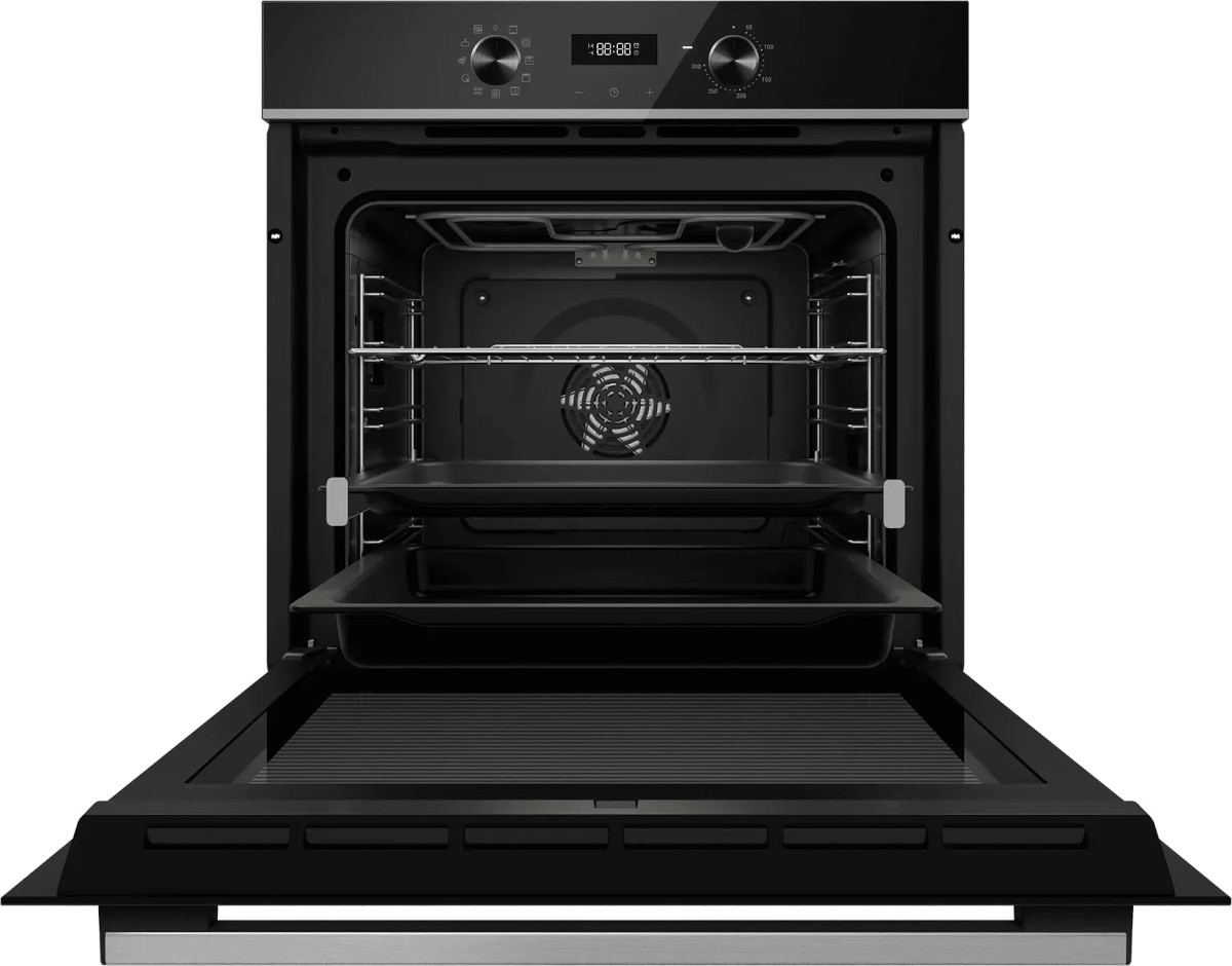 Особенности дизайна и внешней панели управления — также важный пункт при выборе духовки на кухню. В данной модели нужно обратить внимание на цвет — черный/нержавеющая сталь,