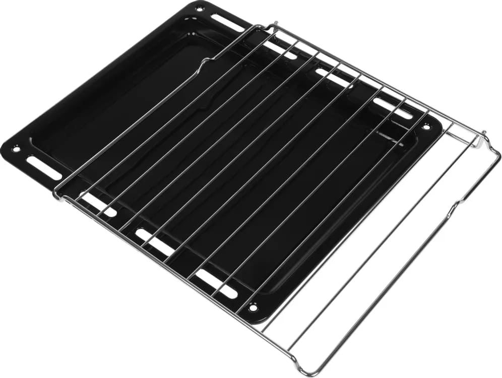 В стандартную комплектацию любого духового шкафа входят один или два противня — эмалированных или с антипригарным покрытием — и решетка. Единственный противень, как правило, имеет низкие бортики и предназначается для приготовления выпечки. Если духовка комплектуется двумя противнями, то второй отличается более высокими бортиками — его можно использовать для запекания мяса, птицы, овощных блюд. На решетке в духовке, не оснащенной грилем, обычно устанавливаются формы для запекания — стальные, керамические или стеклянные. В духовках премиум-класса количество противней может быть увеличено: к стандартному комплекту добавляются противни с перфорацией для мяса, специальные поддоны для сбора выделившегося сока.