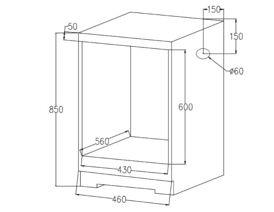 Глубина духовых шкафов, в отличие от их высоты и ширины, не отличается разнообразием. Стандартное значение составляет 54-55 см, что позволяет встраивать устройство в обычную кухонную тумбу или колонну глубиной 60 см так, чтобы оставалось достаточно места до задней стенки мебели или стены кухни для обеспечения нормальной вентиляции. В инструкциях по установке указывается, что это расстояние должно составить не менее 4–5 см. Объем такой духовки может быть равен от 50 до 70 литров.