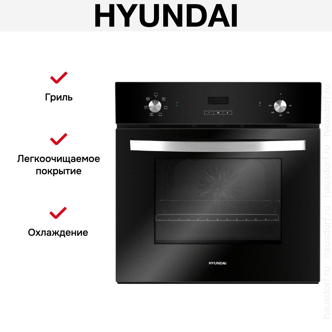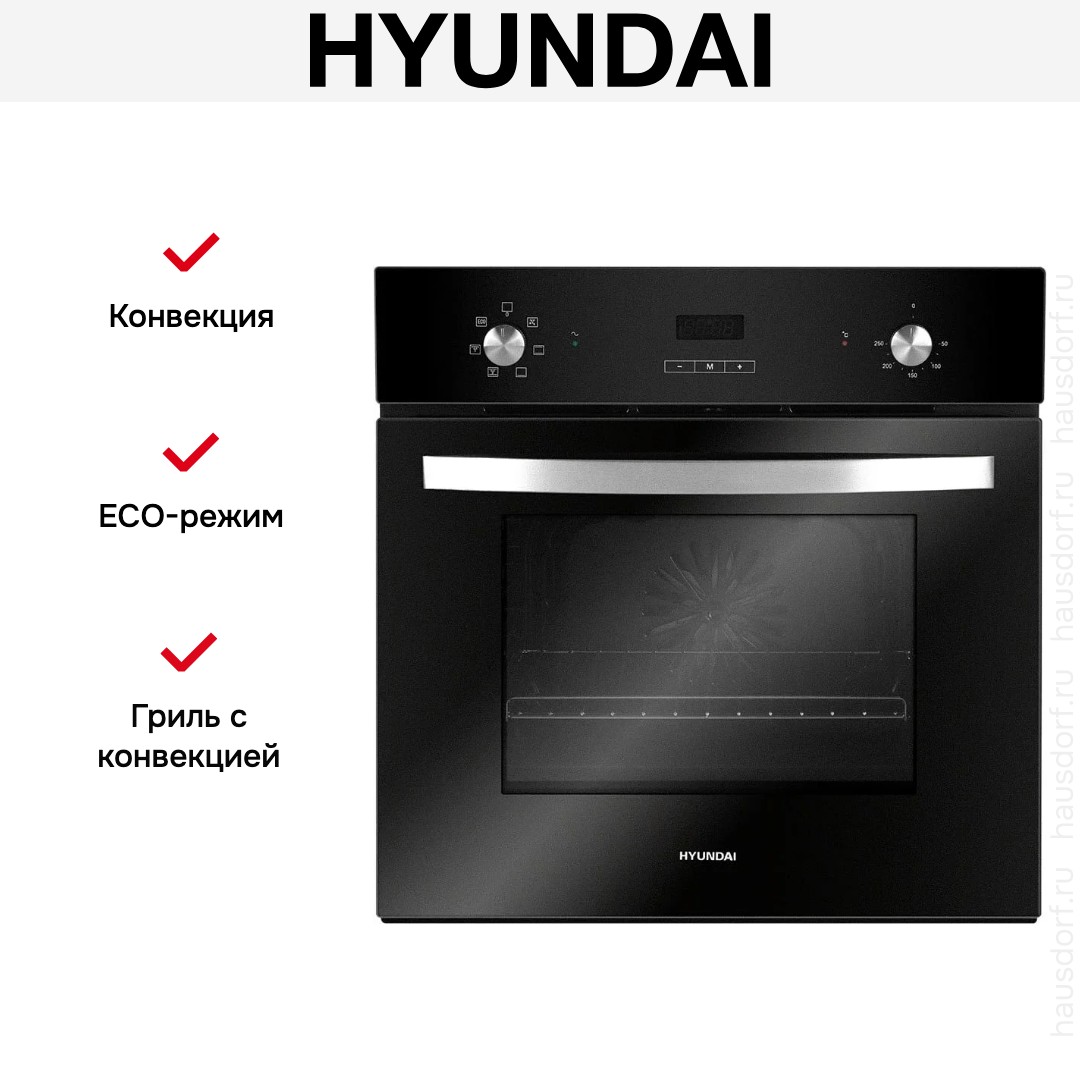 Количество режимов работы в духовом шкафу Хендай: 6. В число доступных программ входят: классический нагрев, нижний нагрев, конвекция, гриль для создания хрустящей корочки, и другие. Помимо основных программ воспользуйтесь специальными возможностями этого прибора: размораживанием продуктов, чтобы сократить время на подготовку; и другими. Тип гриля в этой модели — электрический.