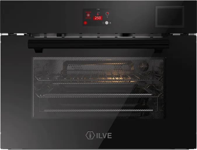 Количество режимов работы в духовом шкафу Илве: 10. В число доступных программ входят: конвекция, приготовление с помощью микроволн, дополнительное использование пара, гриль для создания хрустящей корочки, и другие. Тип гриля в этой модели — электрический.