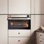 Белый фасад духовки — классический вариант: именно в белом цвете эти приборы производились многие десятилетия. Он стильно выглядит, менее маркий, более удобный в уходе: подойдет как для классических, так и для современных интерьеров. Кроме того, белая духовка будет оптимальным вариантом для небольшой кухни, так как этот цвет зрительно расширяет пространство.