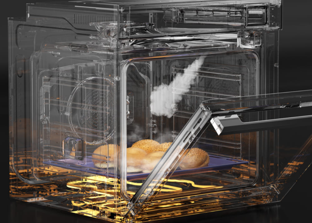 Функция Су-Вид в духовом шкафу — это длительный нагрев, который превращает воду, которую вы поставите в камеру, в обволакивающий пар.