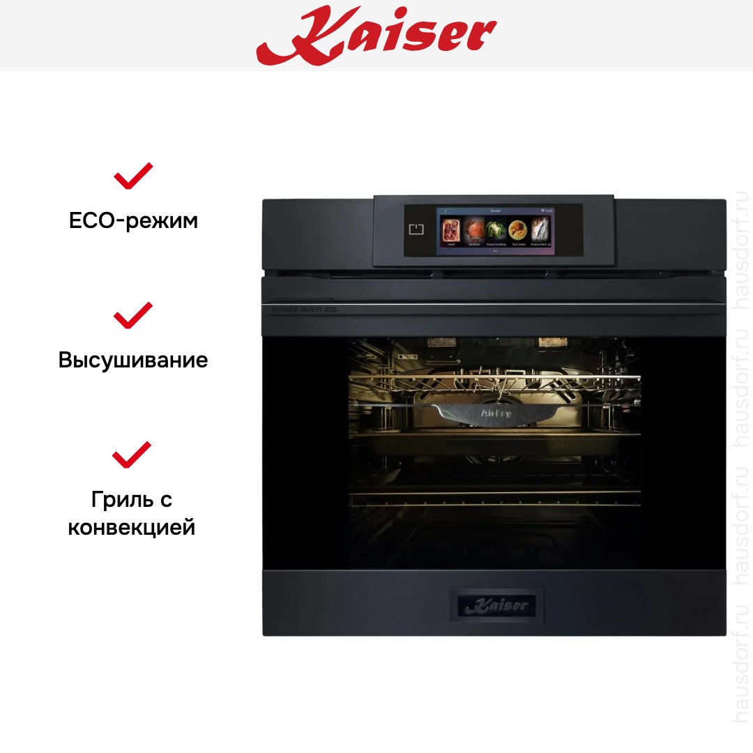 Количество режимов работы в духовом шкафу Кайзер: 29. В число доступных программ входят: классический нагрев, верхний нагрев, конвекция, тушение, гриль для создания хрустящей корочки, пицца, сушка для овощей и фруктов, и другие. Помимо основных программ воспользуйтесь специальными возможностями этого прибора: размораживанием продуктов, чтобы сократить время на подготовку; подогревом посуды для настоящей ресторанной сервировки; опцией автоматического поднятия теста; поддержанием температуры в камере на определенном уровне, чтобы блюда не остывали; вентилятором, совмещенным с нижним нагревом; и другими. Тип гриля в этой модели — инфракрасный.