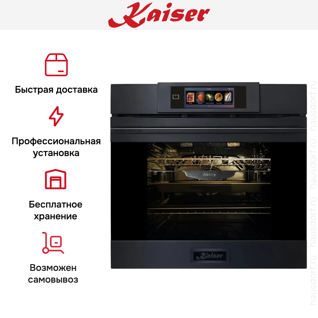 Готовьте свои лучшие блюда и пробуйте новые рецепты с духовым шкафом Kaiser EH 6347! Стандартные размеры и большой объем внутренней камеры — выбор тех, кто много готовит для семьи или частых праздничных встреч с друзьями. Желательно заранее продумать расположение такой модели в кухонном гарнитуре.