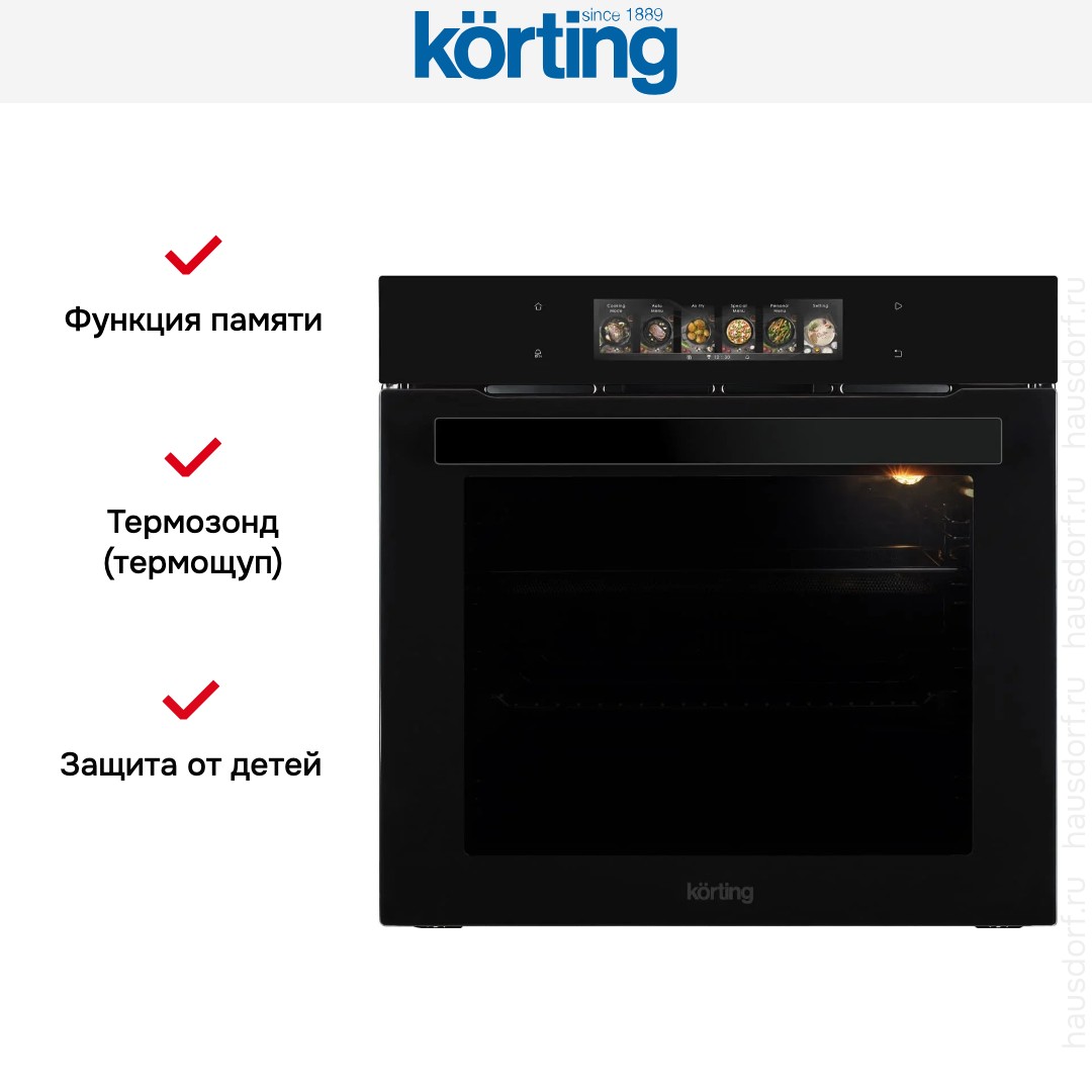 Количество режимов работы в духовом шкафу Кертинг: 15. В число доступных программ входят: классический нагрев, верхний нагрев, нижний нагрев, конвекция, гриль для создания хрустящей корочки, пицца, сушка для овощей и фруктов, и другие. Помимо основных программ воспользуйтесь специальными возможностями этого прибора: размораживанием продуктов, чтобы сократить время на подготовку; подогревом готовых блюд для подачи гостям — благодаря этой функции не нарушается структура, не пересушивается и не пережаривается корочка; подогревом посуды для настоящей ресторанной сервировки; быстрым разогревом для ускорения работы; и другими. Тип гриля в этой модели — электрический.
