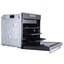 Температура приготовления может устанавливаться в пределах от 30 до 250 градусов. Для быстрого удаления загрязнений со стенок камеры служит специальная легко очищаемая эмаль. Дверца с тройным остеклением не нагревается во время работы духовки Кортинг OKB 1340 GNBX MW. На одном уровне имеются телескопические направляющие, позволяющие извлекать из камеры горячий противень и оставлять его для остывания. Проследить за ходом приготовления помогут две лампы галогенной подсветки.