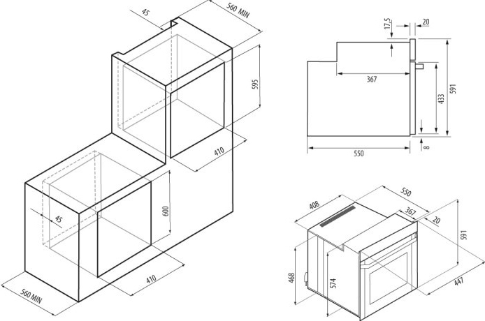 Ко всем моделям прилагаются подробные инструкции по установке, где указаны точные размеры ниши для каждой конкретной духовки.