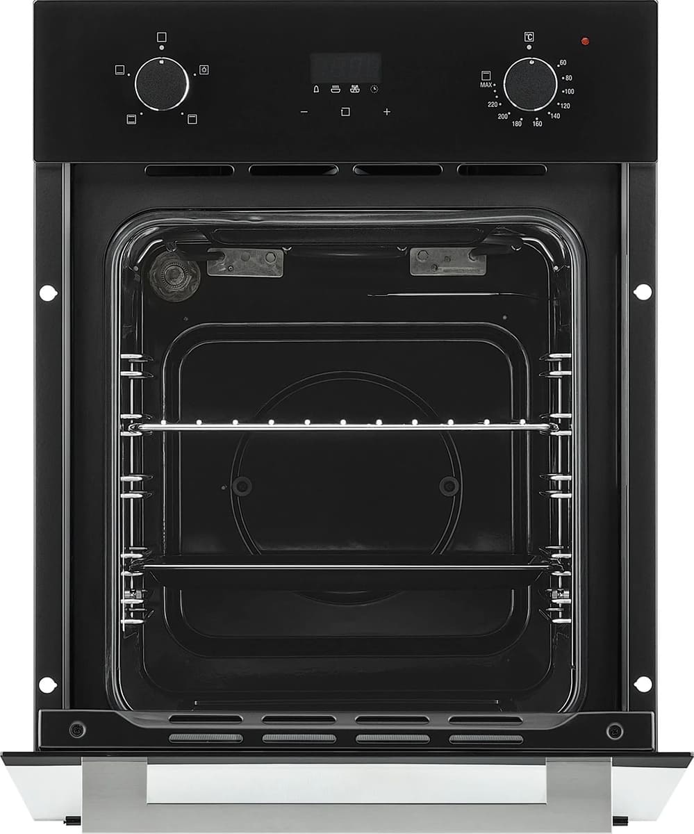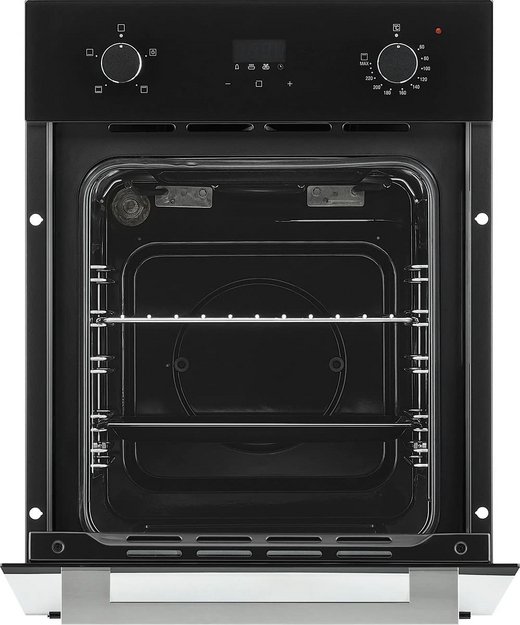 Особенности дизайна и внешней панели управления — также важный пункт при выборе духовки на кухню. В данной модели нужно обратить внимание на цвет — черный,