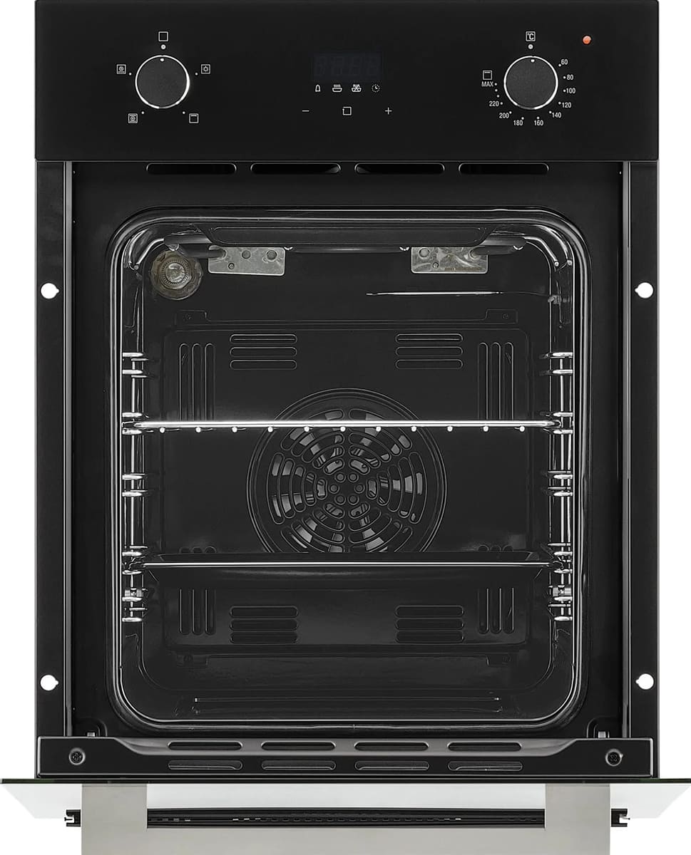 Как известно, стандартная ширина кухонной тумбы составляет около 60 см — поэтому за стандартную ширину встраиваемого духового шкафа принимают 59,5 см. Такие духовки имеют по 3–4 уровня приготовления, в них можно приготовить достаточно объемные блюда. Минимальное значение ширины духовки также соотносится с размерами тумбы для встраивания — оно составляет 44–45 см. Это хороший выбор для небольшой кухни, однако узкие духовые шкафы имеют свои недостатки — в частности, в них невозможно приготовить большой пирог или торт, запечь целый окорок, индейку или большую рыбу.