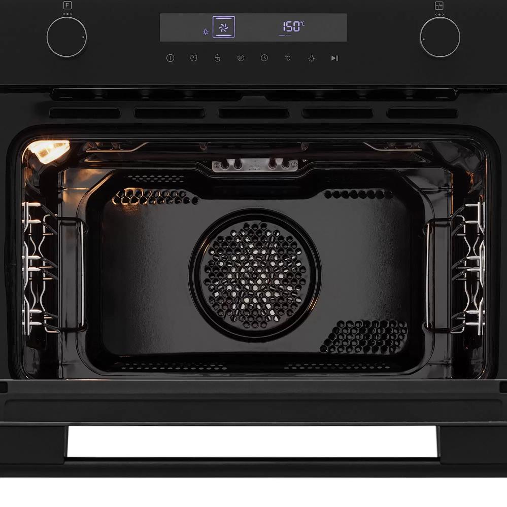 Компактные духовки — оптимальный выбор для тех, кто хочет питаться вкусно и разнообразно, но не располагает кухней большой площади. Подобные модели подойдут также для небольших семей или для тех, кто привык готовить достаточно редко. Объем рабочей камеры у компактных моделей не превышает 55 литров. Ширина их остается стандартной — около 60 см, высота составляет обычно 45 см, а энергопотребление и мощность несколько меньше, чем у полноразмерных моделей. Компактные духовки имеют до трех уровней приготовления.