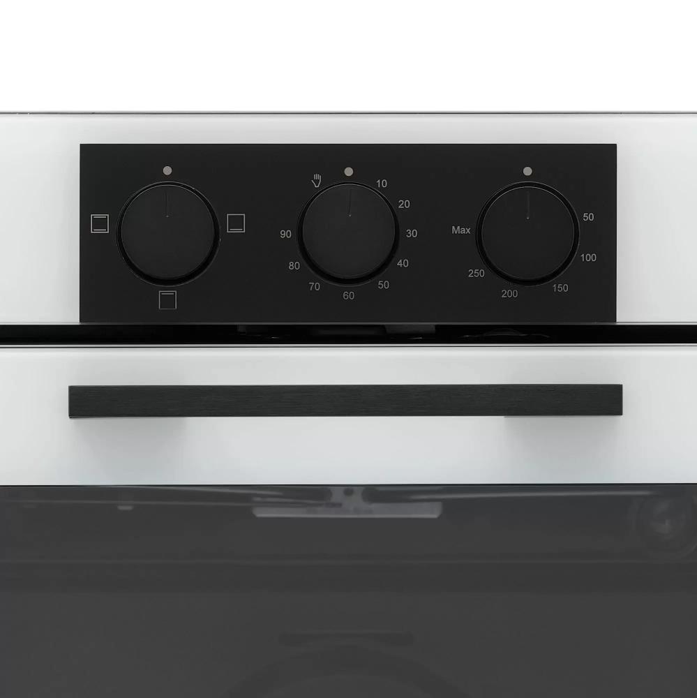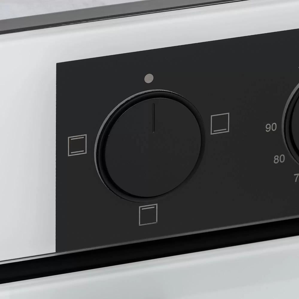 Особенности дизайна и внешней панели управления — также важный пункт при выборе духовки на кухню. В данной модели нужно обратить внимание на цвет — белый, Механическая панель управления позволяет быстро разобраться в настройке программ и не требует чрезмерных усилий.