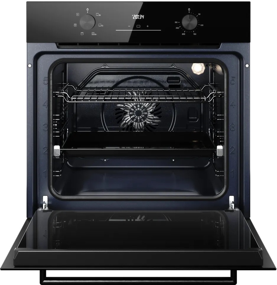 Особенности дизайна и внешней панели управления — также важный пункт при выборе духовки на кухню. В данной модели нужно обратить внимание на цвет — черный,