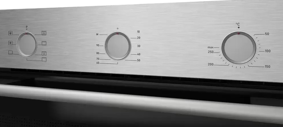Особенности дизайна и внешней панели управления — также важный пункт при выборе духовки на кухню. В данной модели нужно обратить внимание на цвет — нержавеющая сталь/черный, Механическая панель управления позволяет быстро разобраться в настройке программ и не требует чрезмерных усилий.