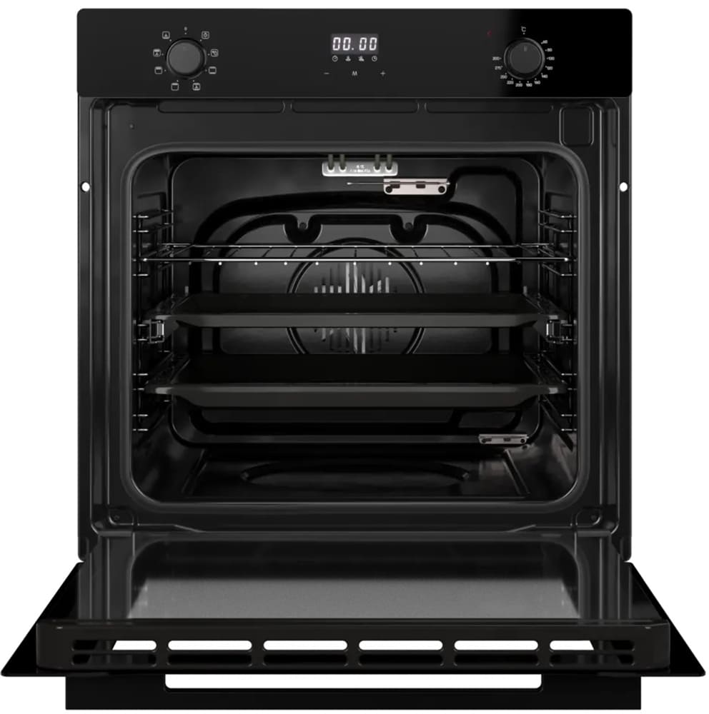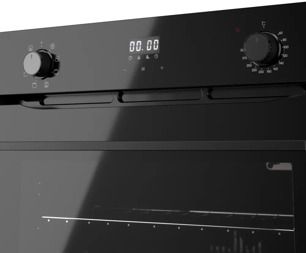Особенности дизайна и внешней панели управления — также важный пункт при выборе духовки на кухню. В данной модели нужно обратить внимание на цвет — черный,
