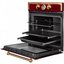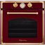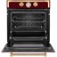 Цветные фасады духовок можно найти у таких производителей, как итальянские Smeg, ILVE, Restart, Bertazzoni, немецкие Kuppersberg и Kaiser. Эти фирмы предлагают духовки с фасадами красного, зеленого, синего, коричневого цветов с богатой и оригинальной фурнитурой, а также интересные варианты в цвете меди и платины.