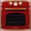 Цветные фасады духовок можно найти у таких производителей, как итальянские Smeg, ILVE, Restart, Bertazzoni, немецкие Kuppersberg и Kaiser. Эти фирмы предлагают духовки с фасадами красного, зеленого, синего, коричневого цветов с богатой и оригинальной фурнитурой, а также интересные варианты в цвете меди и платины.