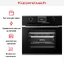 Сенсорный дисплей работает одновременно как устройство управления и устройство вывода данных, он может функционировать в интерактивном режиме. Духовки с текстовым дисплеем позволяют отобразить большее количество опций: как правило, они обладают и большим функционалом. Кроме выбранного режима работы и установленной температуры они отображают, например, фактическое ее значение, достигнутое на данный момент. На дисплее могут также появляться рекомендации по выбору автоматической программы для приготовления определенного вида продуктов, по установке температуры и времени приготовления. Здесь же выдаются сообщения о блокировке дверцы или панели управления, о зафиксированных ошибках, уровне мощности микроволн и пара.