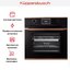 Сенсорный дисплей работает одновременно как устройство управления и устройство вывода данных, он может функционировать в интерактивном режиме. Духовки с текстовым дисплеем позволяют отобразить большее количество опций: как правило, они обладают и большим функционалом. Кроме выбранного режима работы и установленной температуры они отображают, например, фактическое ее значение, достигнутое на данный момент. На дисплее могут также появляться рекомендации по выбору автоматической программы для приготовления определенного вида продуктов, по установке температуры и времени приготовления. Здесь же выдаются сообщения о блокировке дверцы или панели управления, о зафиксированных ошибках, уровне мощности микроволн и пара.
