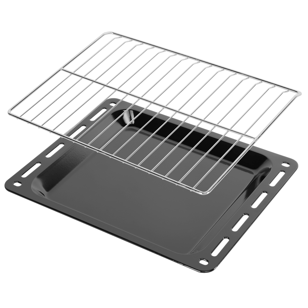 В стандартную комплектацию любого духового шкафа входят один или два противня — эмалированных или с антипригарным покрытием — и решетка. Единственный противень, как правило, имеет низкие бортики и предназначается для приготовления выпечки. Если духовка комплектуется двумя противнями, то второй отличается более высокими бортиками — его можно использовать для запекания мяса, птицы, овощных блюд. На решетке в духовке, не оснащенной грилем, обычно устанавливаются формы для запекания — стальные, керамические или стеклянные. В духовках премиум-класса количество противней может быть увеличено: к стандартному комплекту добавляются противни с перфорацией для мяса, специальные поддоны для сбора выделившегося сока.