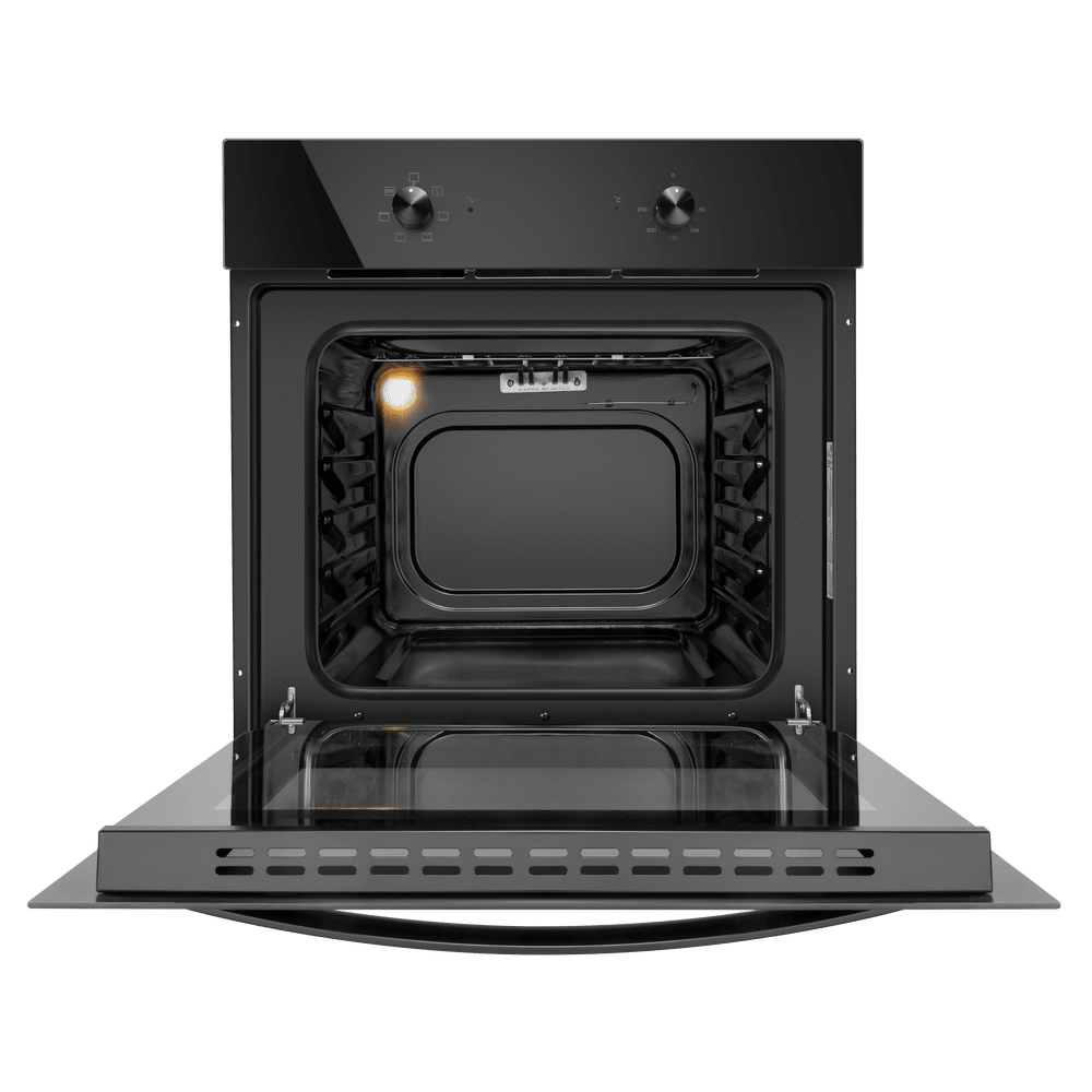 Глубина духовых шкафов, в отличие от их высоты и ширины, не отличается разнообразием. Стандартное значение составляет 54-55 см, что позволяет встраивать устройство в обычную кухонную тумбу или колонну глубиной 60 см так, чтобы оставалось достаточно места до задней стенки мебели или стены кухни для обеспечения нормальной вентиляции. В инструкциях по установке указывается, что это расстояние должно составить не менее 4–5 см. Объем такой духовки может быть равен от 50 до 70 литров.